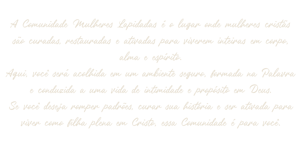 Na Comunidade Mulheres Lapidadas, você vai ser conduzida a: